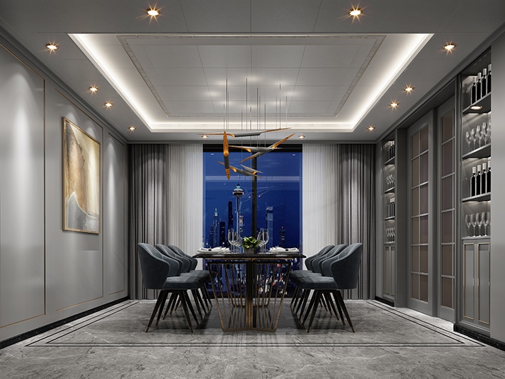 摒棄了無謂的奢華,大理石加香檳金烘托低調(diào)奢華的品質(zhì),挺廓的輪廓線條和大氣的造型呼應(yīng)并加強了某種理性的審美。