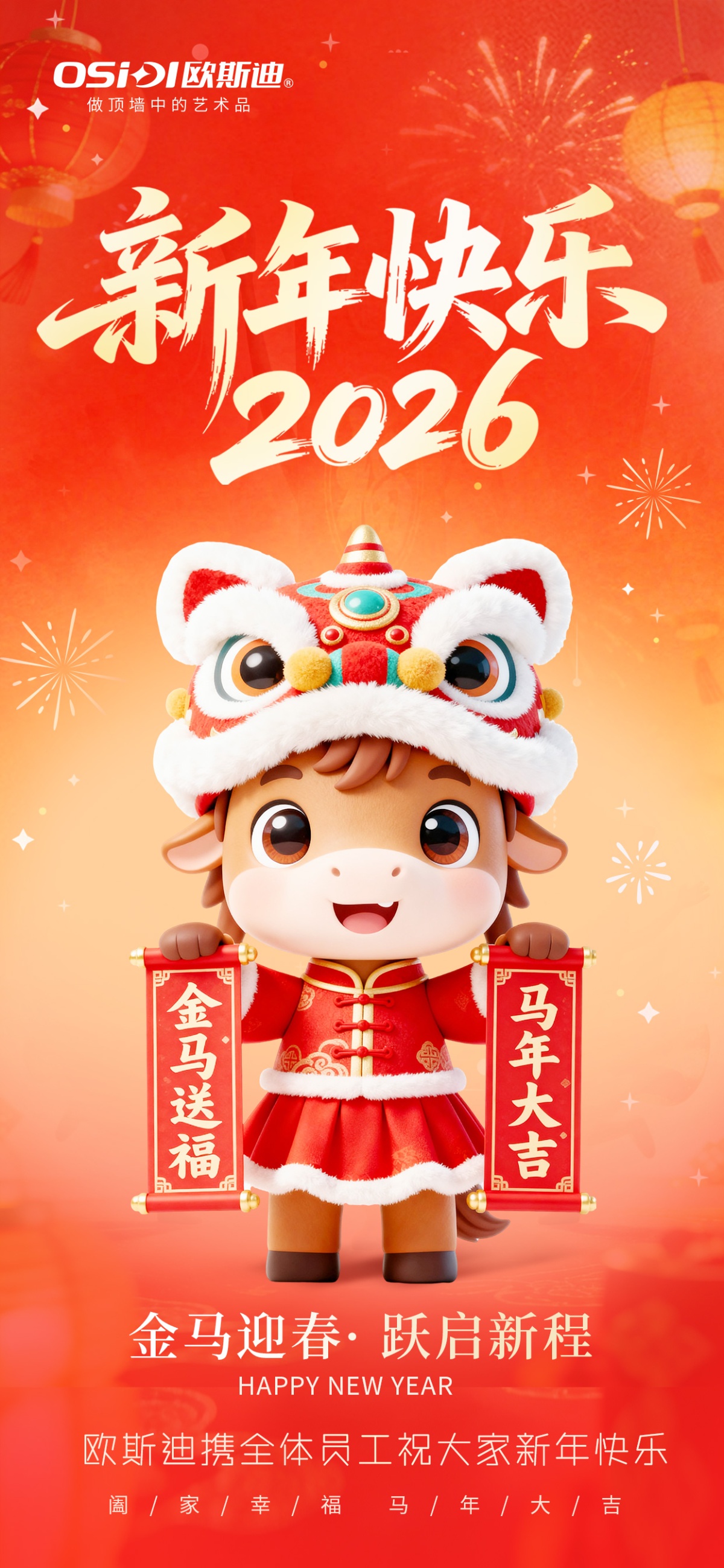 新年煥新浴,溫暖迎新春,歐斯迪祝大家新年快樂!